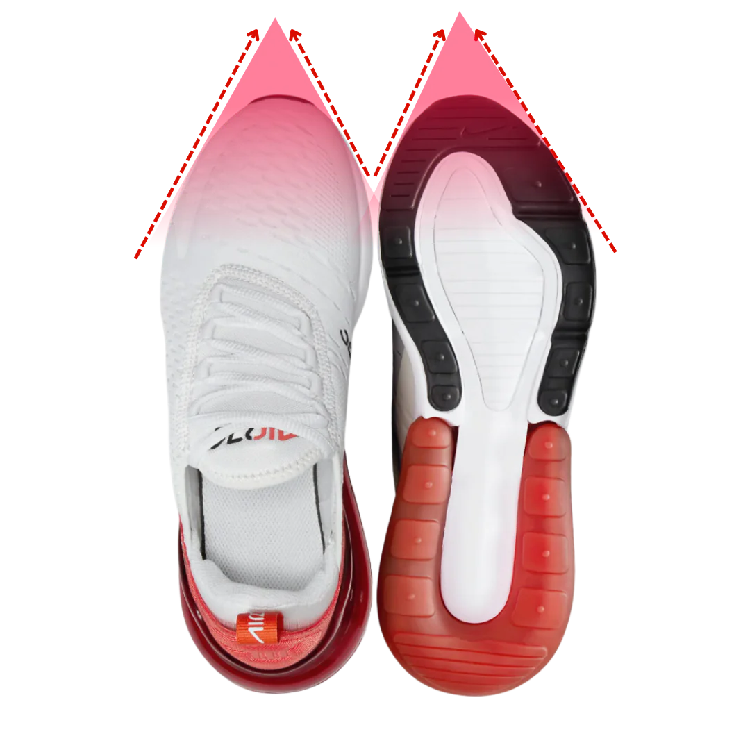 1) STIJF: Een stijve schoen beperkt de beweging in de voet, wat resulteert in zwakkere spieren en stijvere gewrichten.